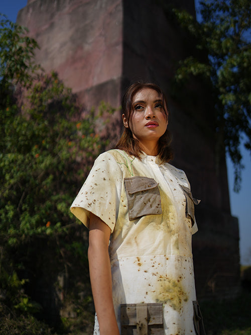This boxy fit pure cotton shirt dress printed with leaves and beautiful embroidery details is a great way to spruce up your everyday wardrobe. Take it for a spin at the mall or a picnic with your friends.